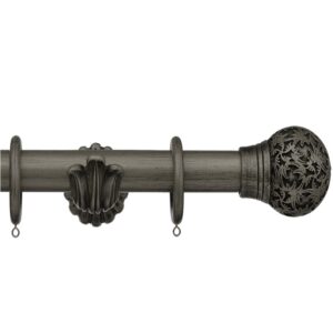 Masterpiece 50mm Wood curtain pole set, Ornate Bracket, Elizabethan Orb Finial, Pewter | ABC Decor