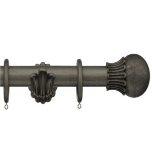 Masterpiece Pewter Wood 50mm curtain pole set, Standard Bracket, Byzantine Stud Finial, Pewter | ABC Decor