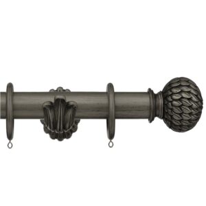 Masterpiece Pewter Wood 50mm curtain pole set, Ornate Bracket, Byzantine Stud Finial, Pewter | ABC Decor