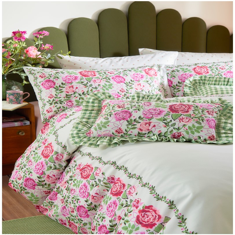 The Cath Kidston Dolly Rose cushion features a vibrant and joyful hand painted bloom in vibrant pinks and reds printed onto soft cotton.