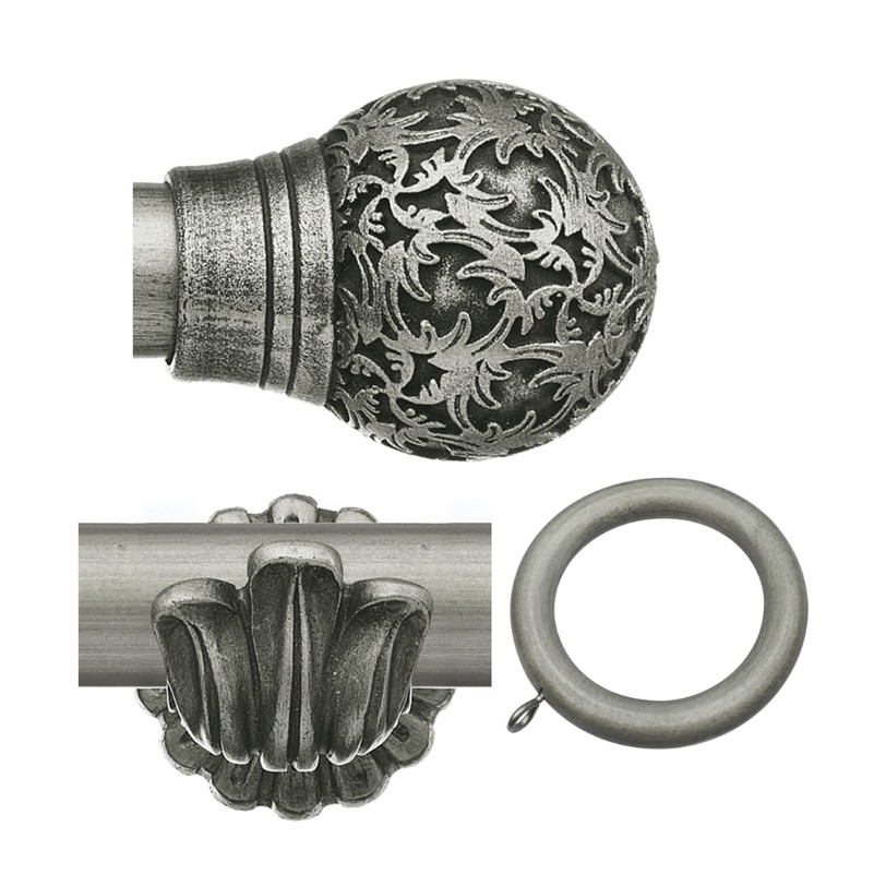 Integra Masterpiece Antique Silver Curtain pole set, Pole Diameter 35mm Pole Diameter