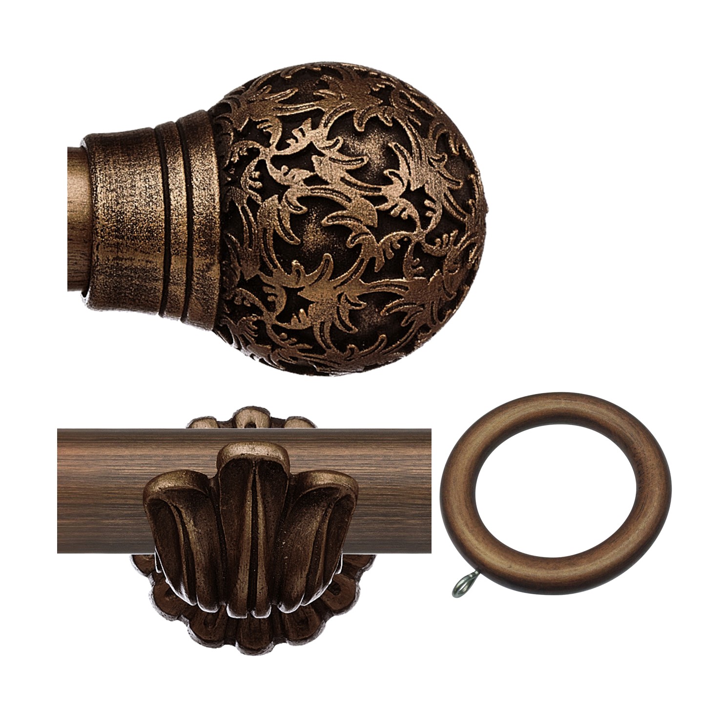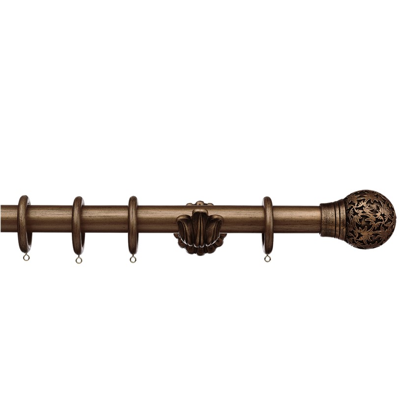 Masterpiece 35mm Wood curtain pole set, Ornate Bracket, Chantilly Finial, Burnished Bronze | ABC Decor