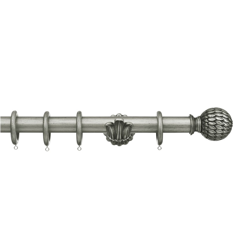 Masterpiece 35mm Wood curtain pole set, Ornate Bracket, Phoenix Finial, Antique Silver | ABC Decor