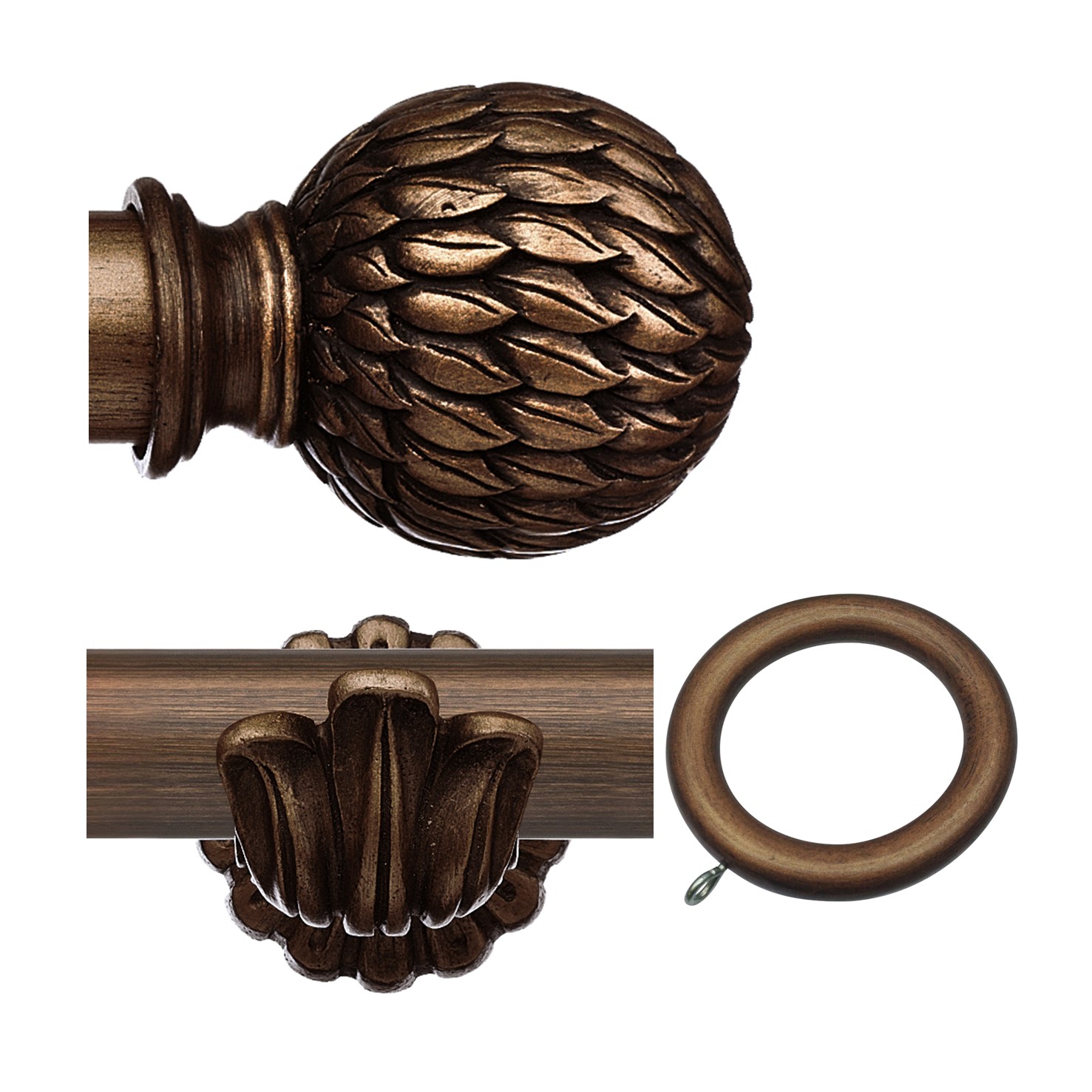 This unit includes brackets, curtain rings, finials, and a conventional curtain rod measuring 35mm in diameter. Rings can be removed to use as an eyelet curtain pole