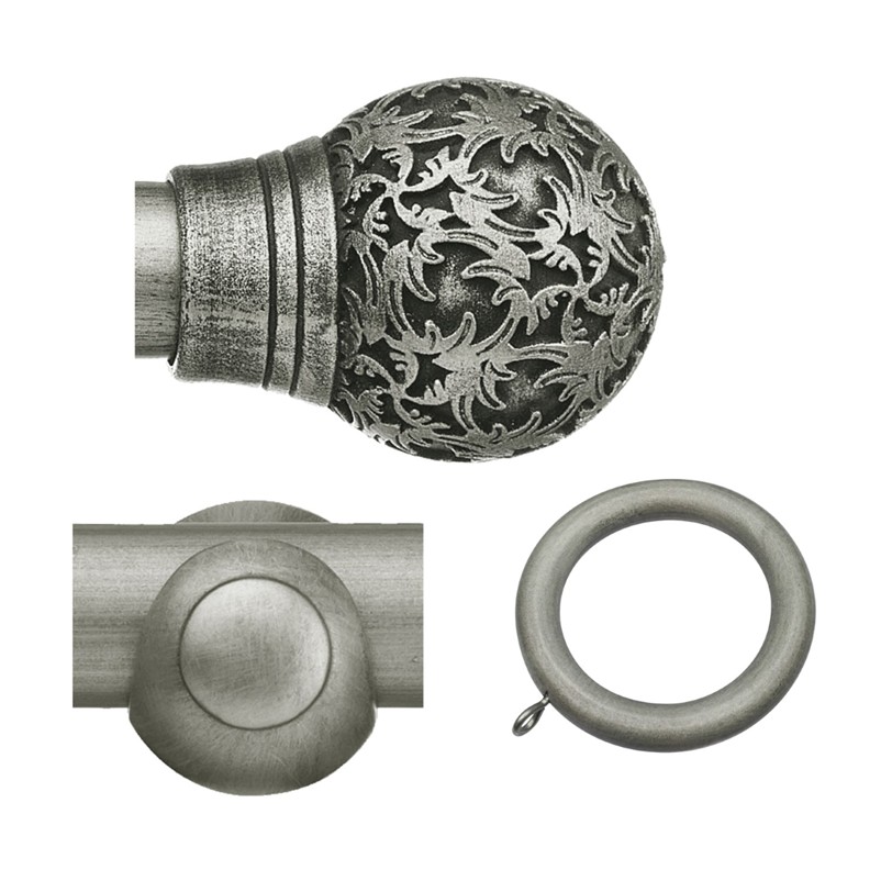 Integra Masterpiece Antique Silver Curtain pole set, Pole Diameter 35mm Pole Diameter