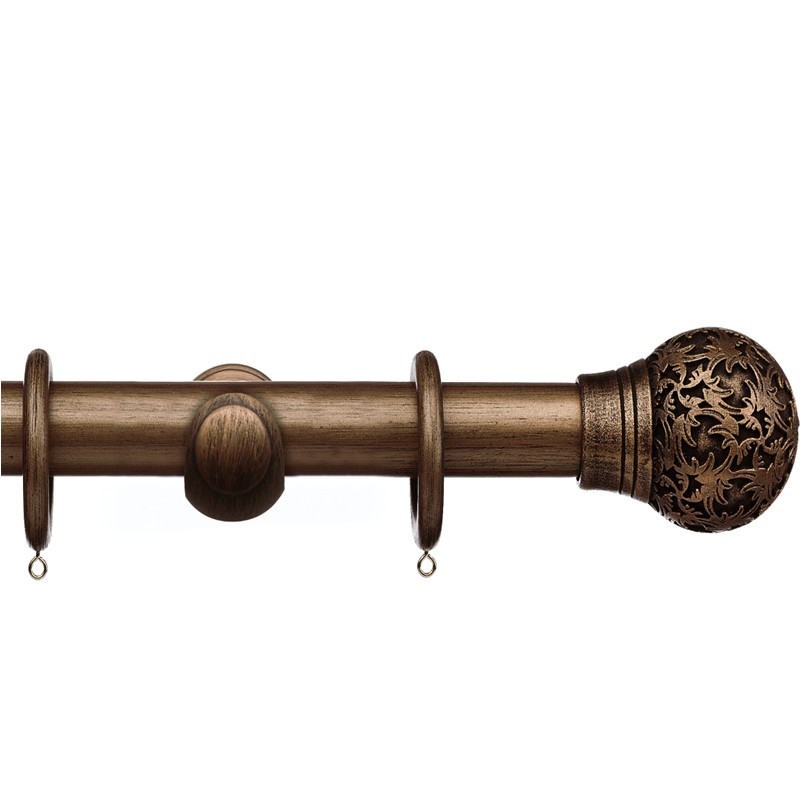 Masterpiece 50mm Wood curtain pole set, Standard Bracket, Chantilly Finial, Burnished Bronze | ABC Decor