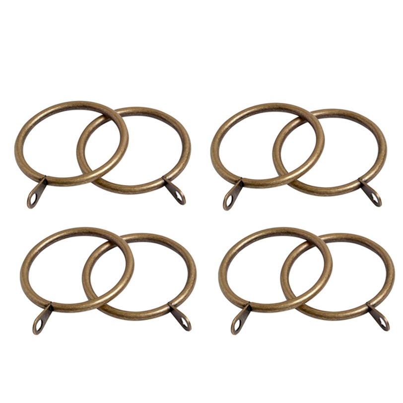 Metal Curtain Rings, Pristine 25-28mm Unlined Rings Pack of 8 Antique Brass | ABC Decor