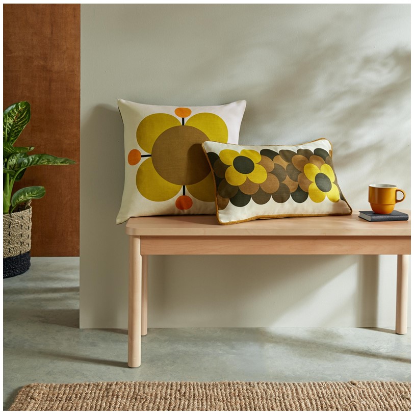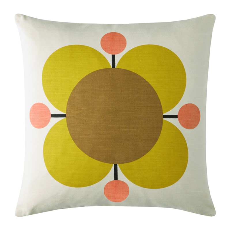 In tones of yellow and pops of orange, this Atomic Flower cushion is perfect for adding a bright, retro touch to your home.