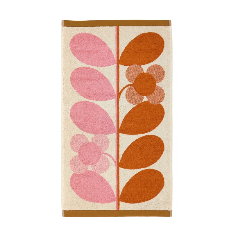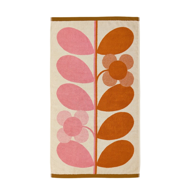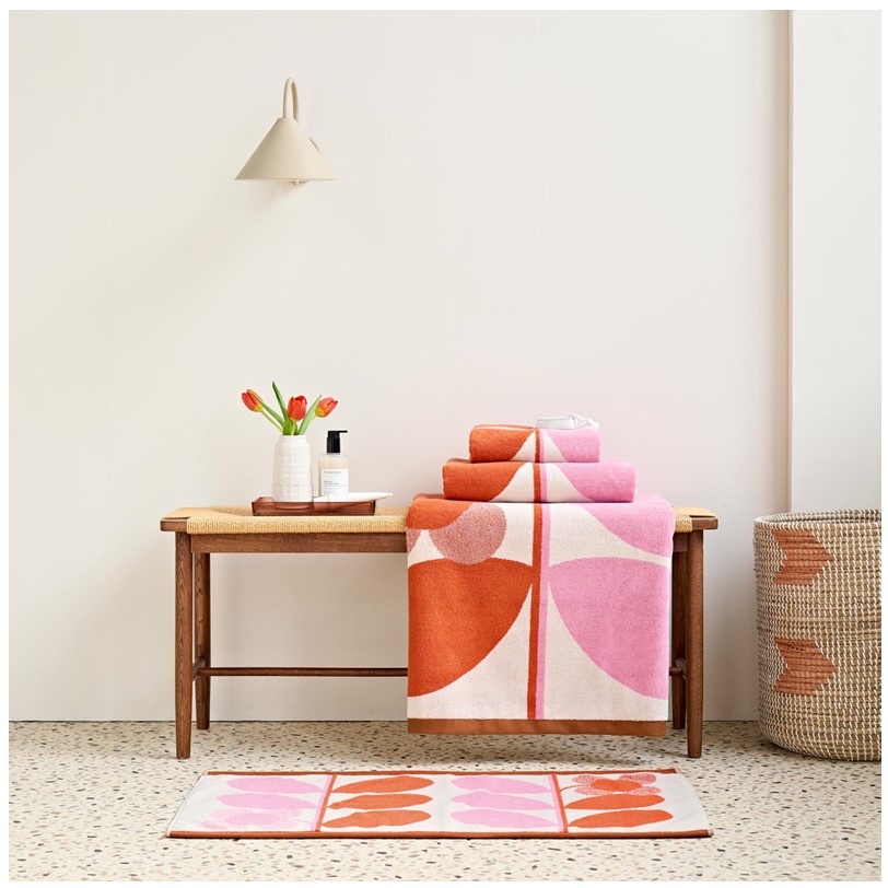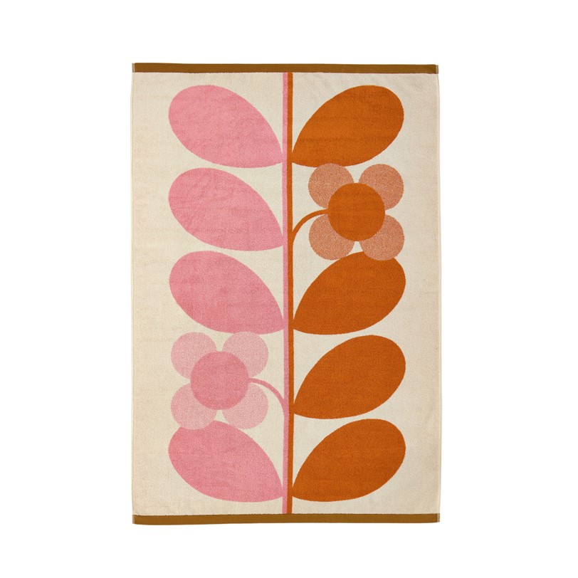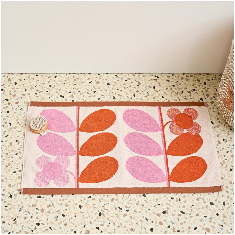 In a joyful palette of bright pink and orange, Orla Kiely’s signature stem motif marries beautifully with the four-petal flower.