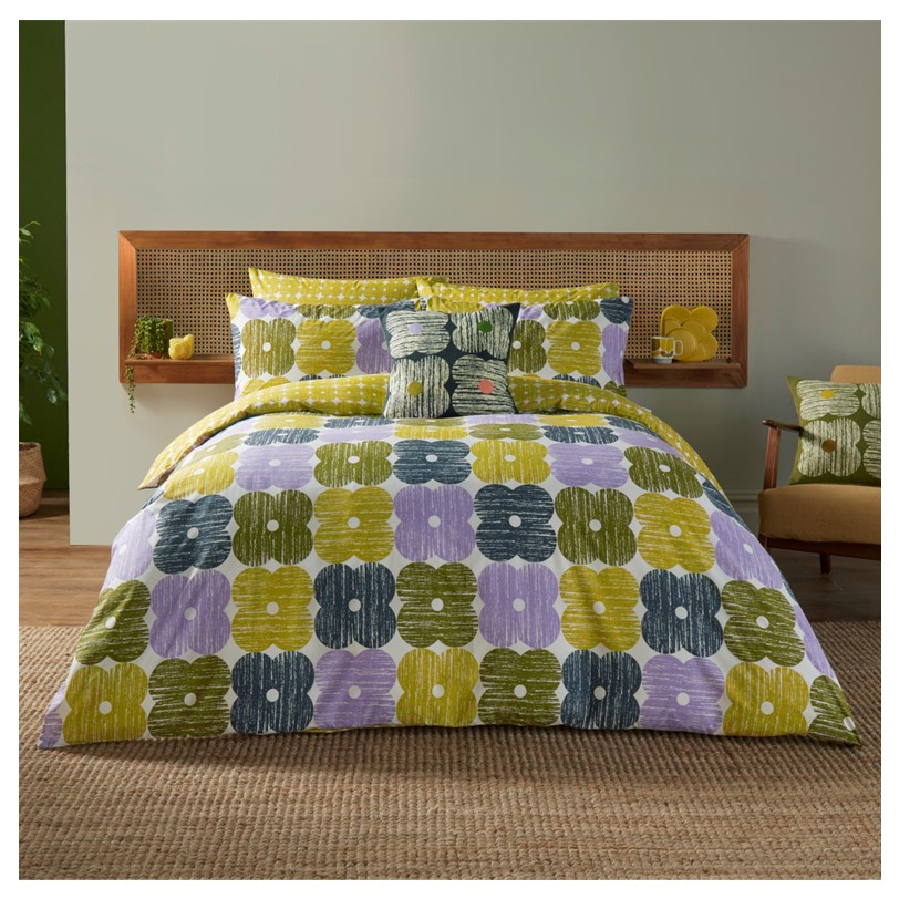 This reversible bed set is coloured in a palette of light cream, lilac and seagrass greens shades.