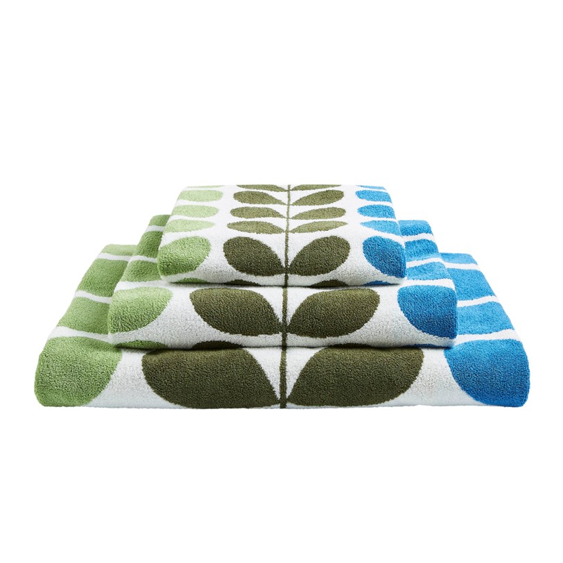 Bright and contemporary, Orla Kiely’s iconic Stem design decorates these luxuriously soft towels in bright shades of green and marine blue