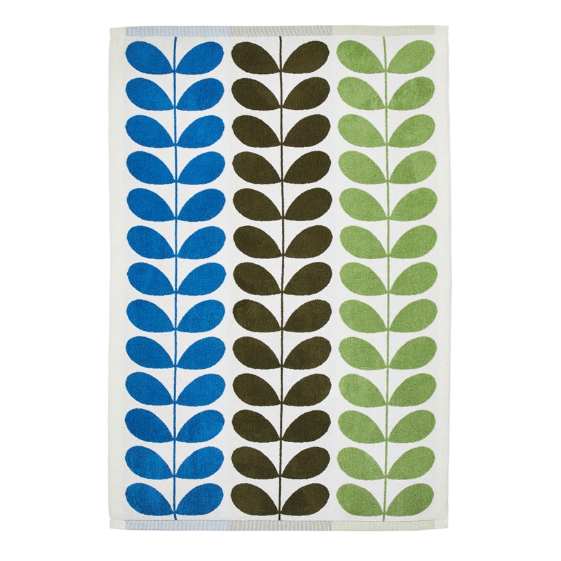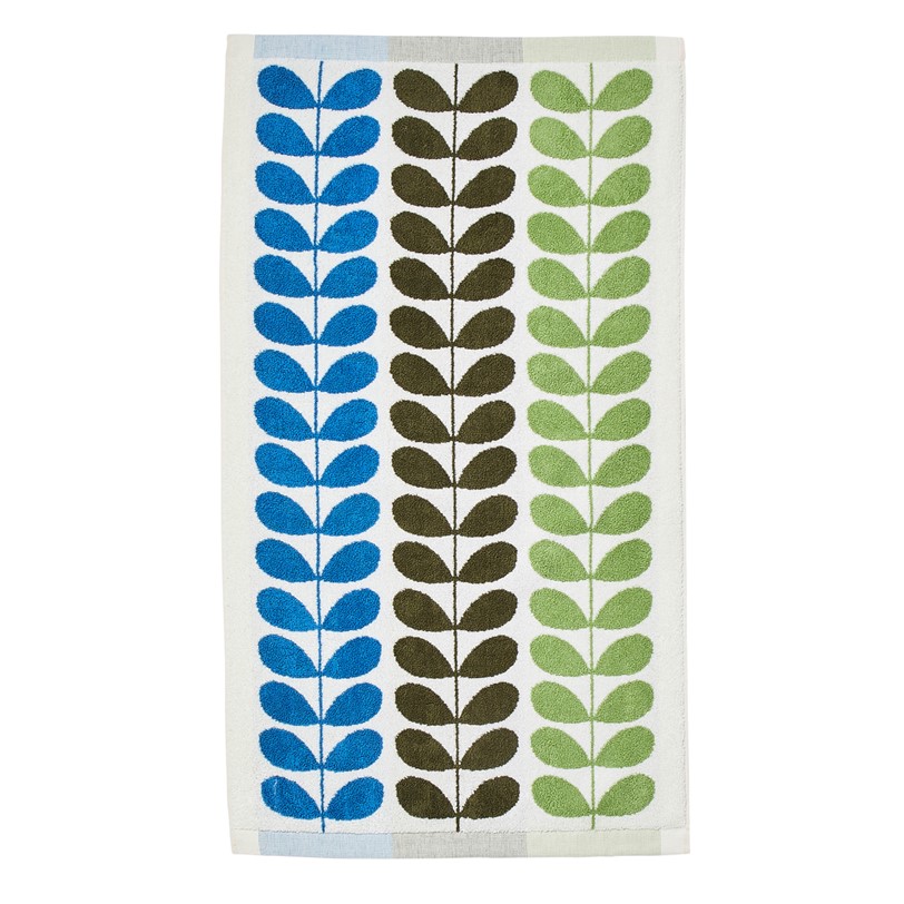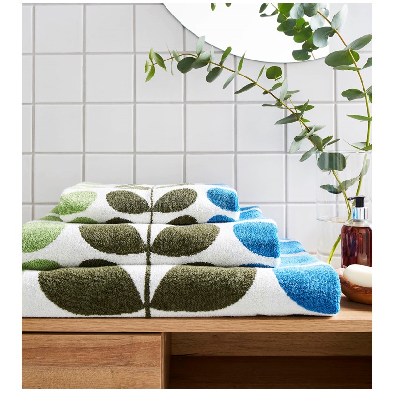 Bright and contemporary, Orla Kiely’s iconic Stem design decorates these luxuriously soft towels in bright shades of green and marine blue.