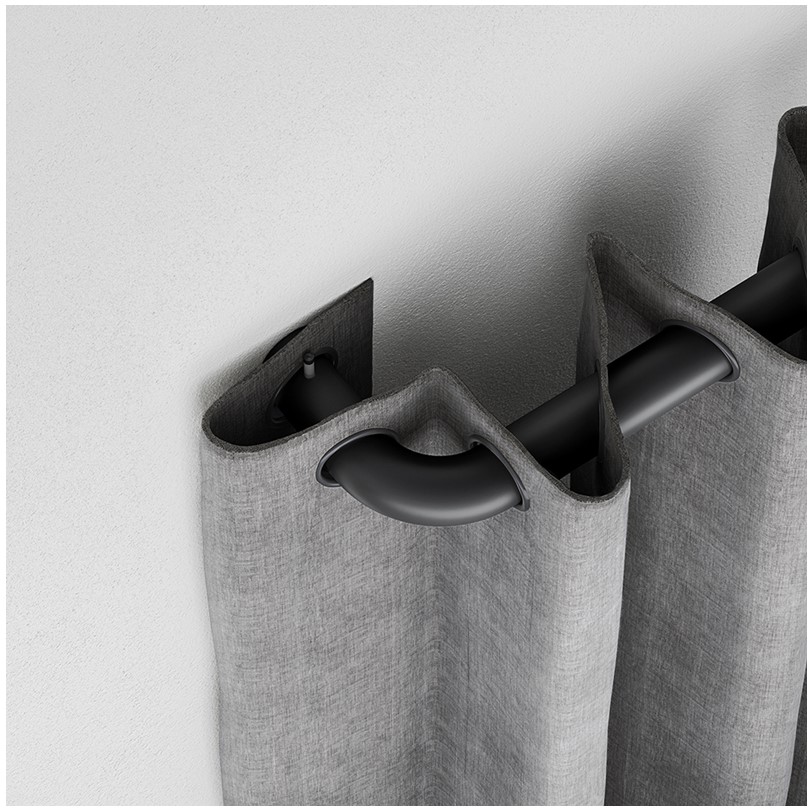 25-28mm Metal extendable curtain pole complete set, featuring curved ends to sit flush against the wall to help insulate the room.