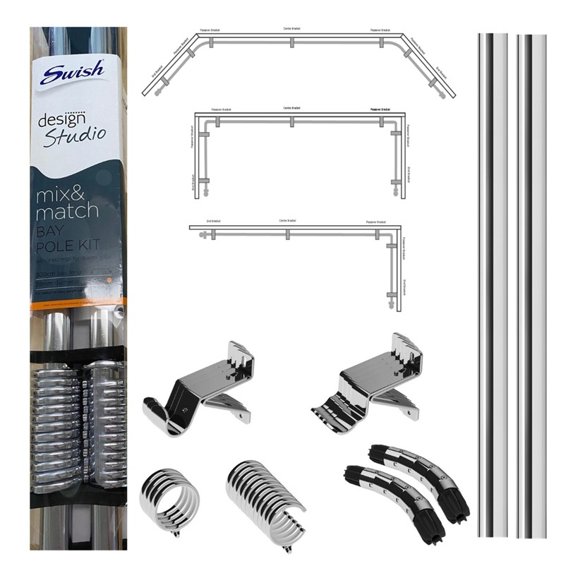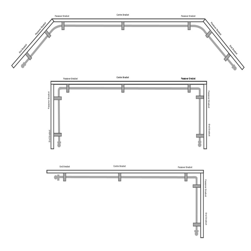 Bay Window Pole set, set includes wall support brackets, Rings, corner joints, Consort Finials, Fixings & Instructions