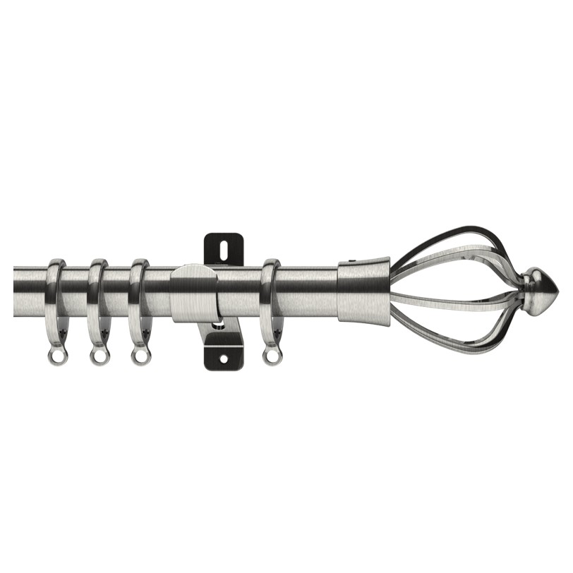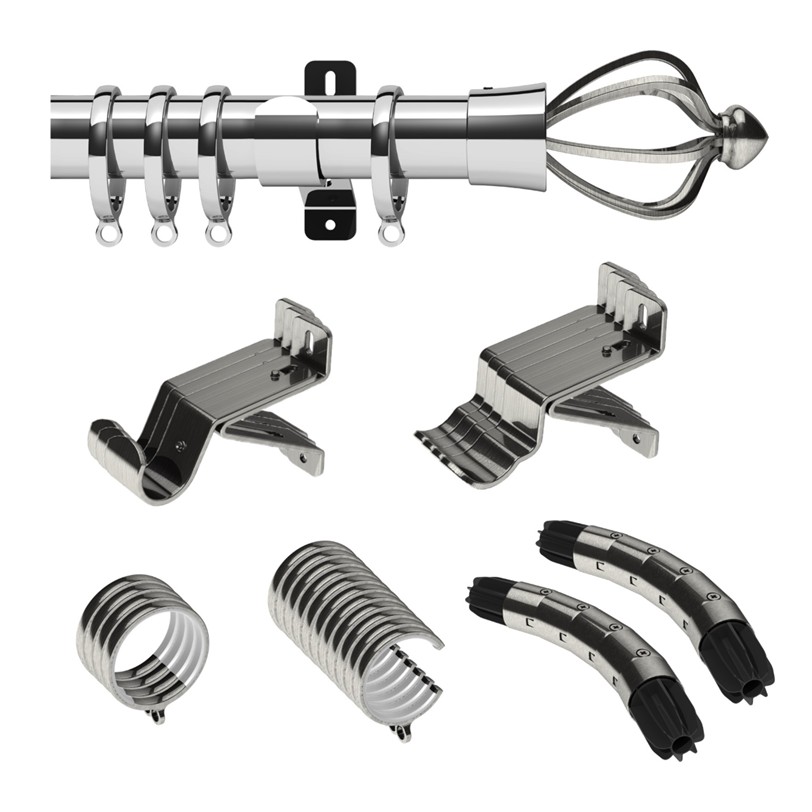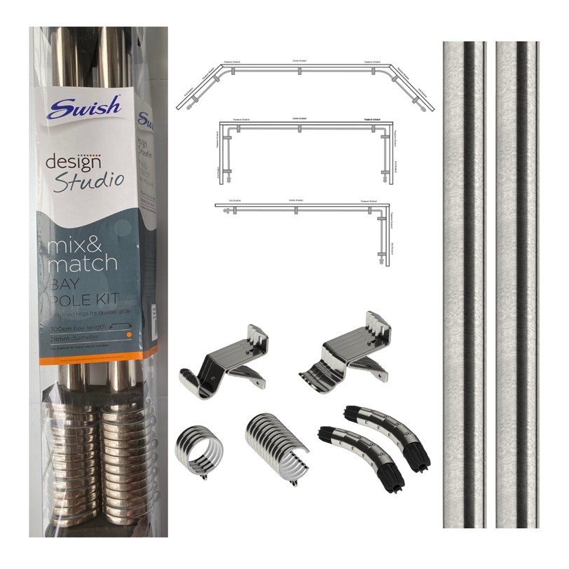 Bay Window Pole set, set includes wall support brackets, Rings, corner joints, Consort Finials, Fixings & Instructions