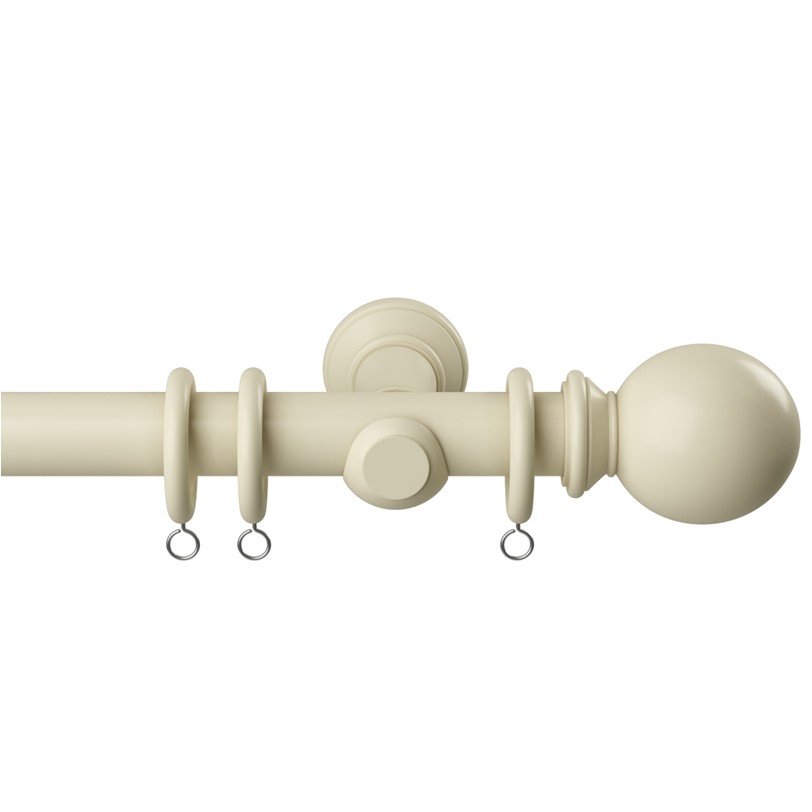 Woodland 28mm Wood curtain pole set, with Plain Finials, Cream | ABC Decor